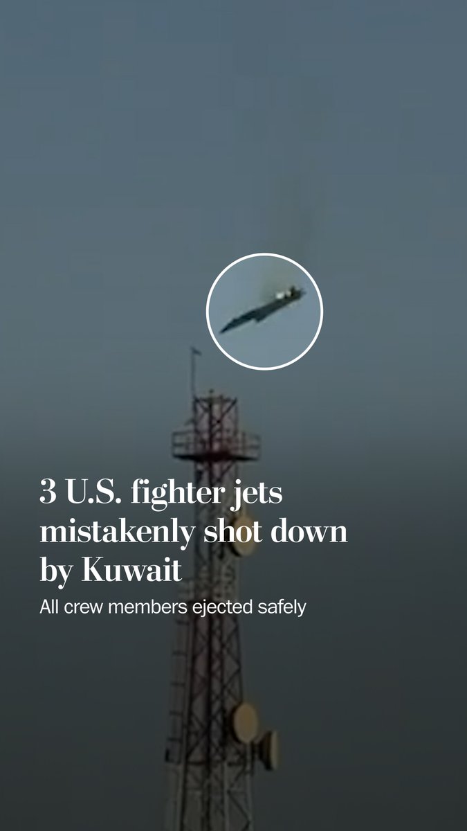 Three American F-15E Strike Eagle fighter jets crashed Monday morning over Kuwait in an “apparent friendly fire” incident, U.S. Central Command said in a statement. All six crew members ejected safely and are in stable condition. Read more: [ 网页链接 ↗ ] [ 网页链接 ↗ ]